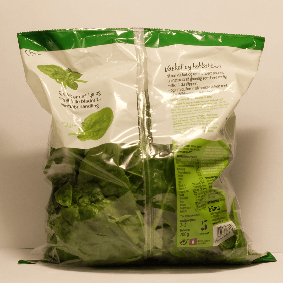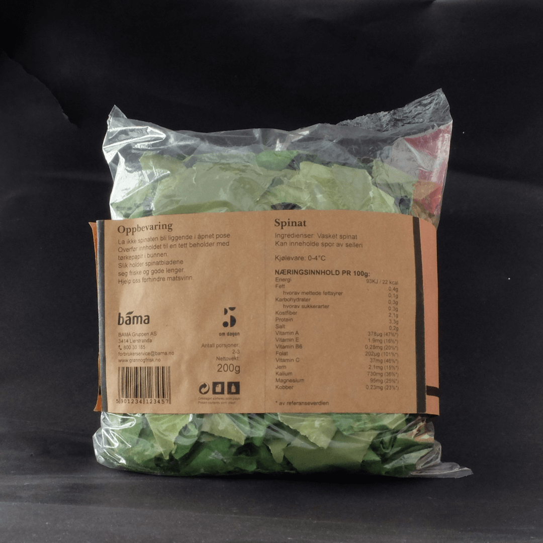 Hvordan kan et redesign av emballasjeløsning for spinat bidra til reduksjon av miljøbelastninger i tråd med Bamas mål om bærekraft?