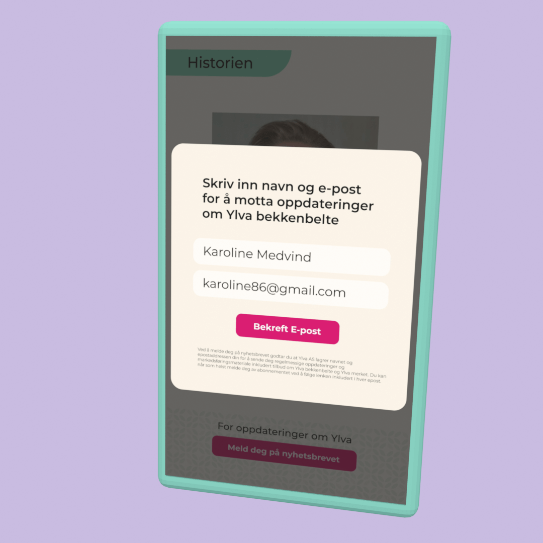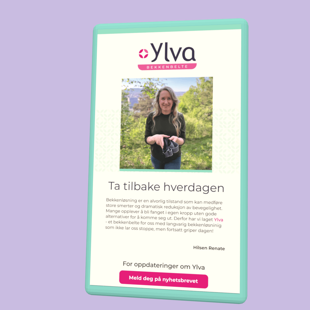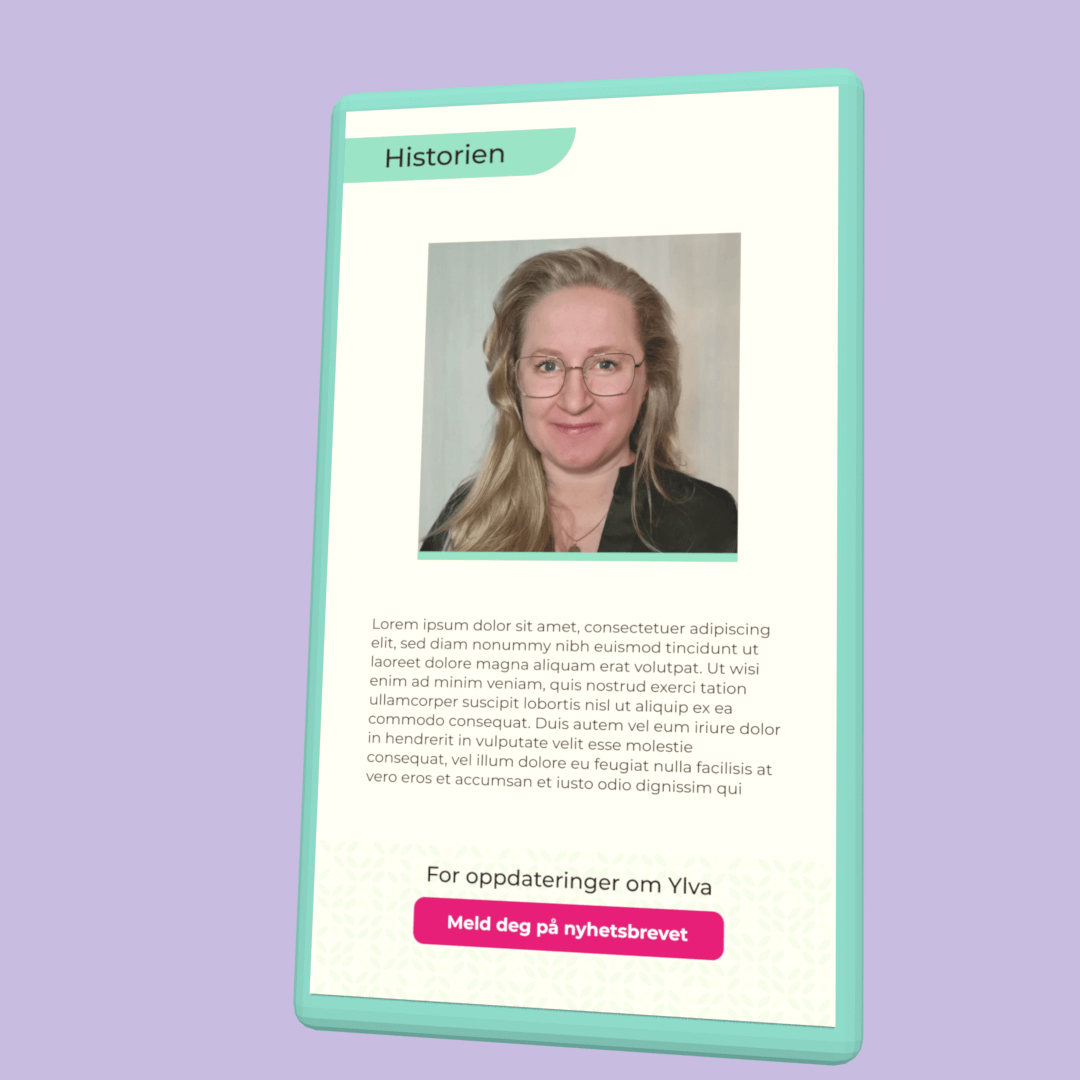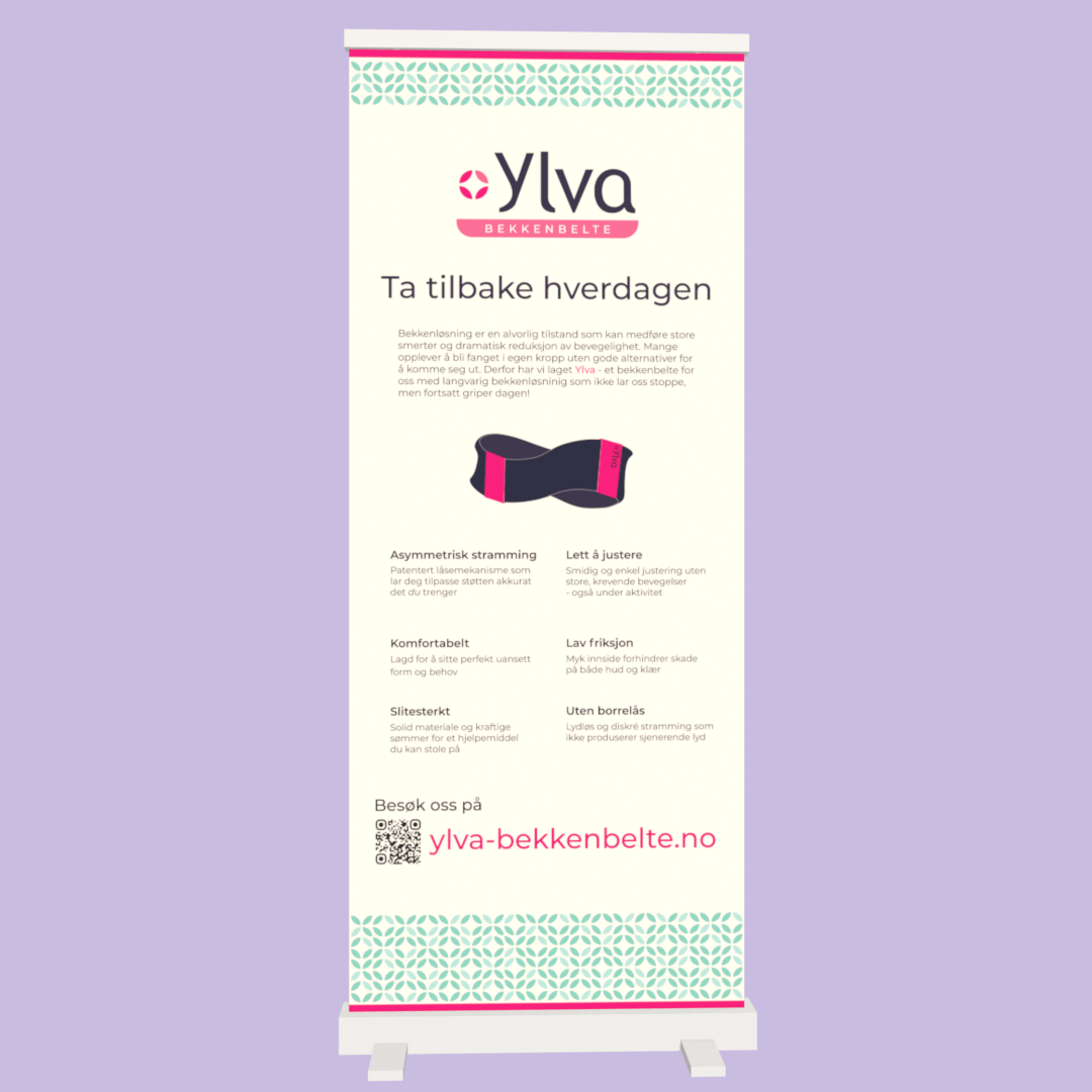 Logo, mønster, fargepalett og typografi, samt føringer for bruk av alle elementene samlet i en designmanual. Disse føringene er også brukt i utformingen av kommunikasjonsmateriale for Ylva som kan brukes før lansering, som event-materiale og nyhetsbrev.
